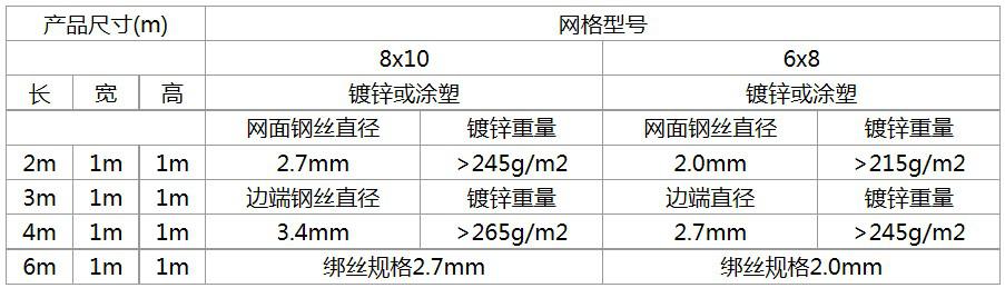 格賓網價格,報價根據規格不同,需求量大小而相應變化,以下為常用尺寸及規格范圍