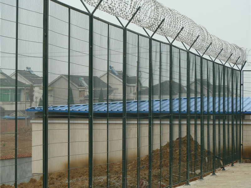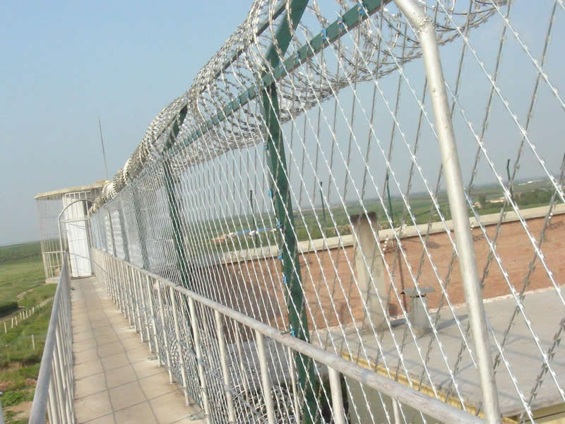 監獄護欄網又稱作“Y型安全防御護網”,是由V型支架立柱,加強型焊接片網,安全防盜連接件和熱鍍鋅刀片刺籠組成強度和安全防御性級別很高。監獄護欄網可平地安裝,也可在圍墻上二次安裝,有效防止攀逃。直刺式刺網隔離帶,是用柱體和普通刺繩橫、縱、斜向交叉綁定成刺網隔離帶。主要用于特殊地帶、軍事基地圈護、溝壕圈護,安裝簡易,經濟耐用。
